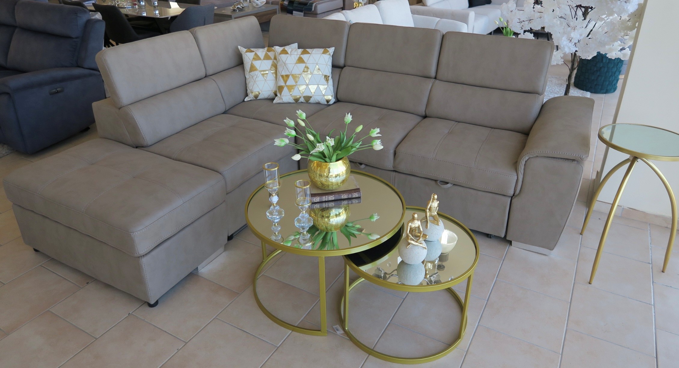 SOFA BED LEFT+RIGHT CORNER TAUPE